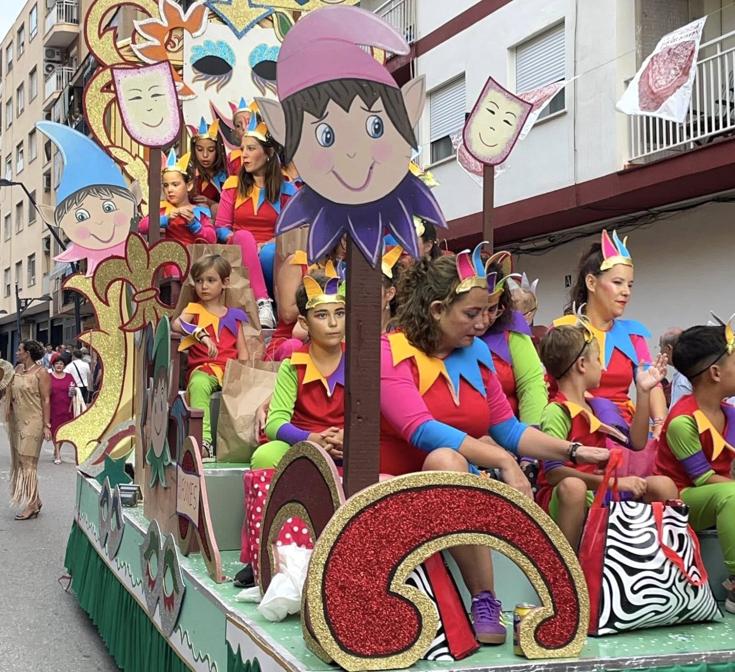 Al igual que por la mañana,la tarde se llena de una gran cantidad de personas, cada una a lo suyo, aunque la decoración cambia drásticamente y la variedad de atuendos es enorme. Al doblar una esquina, puedes encontrarte con cualquier cosa. La gran y colorida cabalgata comienza a organizarse, extendiéndose por casi un kilómetro desde el teatro Montecarlo hasta La Violeta. A lo largo del recorrido, la gente se prepara para presenciar el espectáculo. Desde la madrugada, los vecinos colocan sillas traídas desde sus hogares en las aceras y en lugares libres de las calles, atándolas unas a otras y marcándolas para distinguir su propiedad. El pueblo para el pueblo, y cada metro cuadrado disponible es disputado por aquellos que no quieren perderse nada.