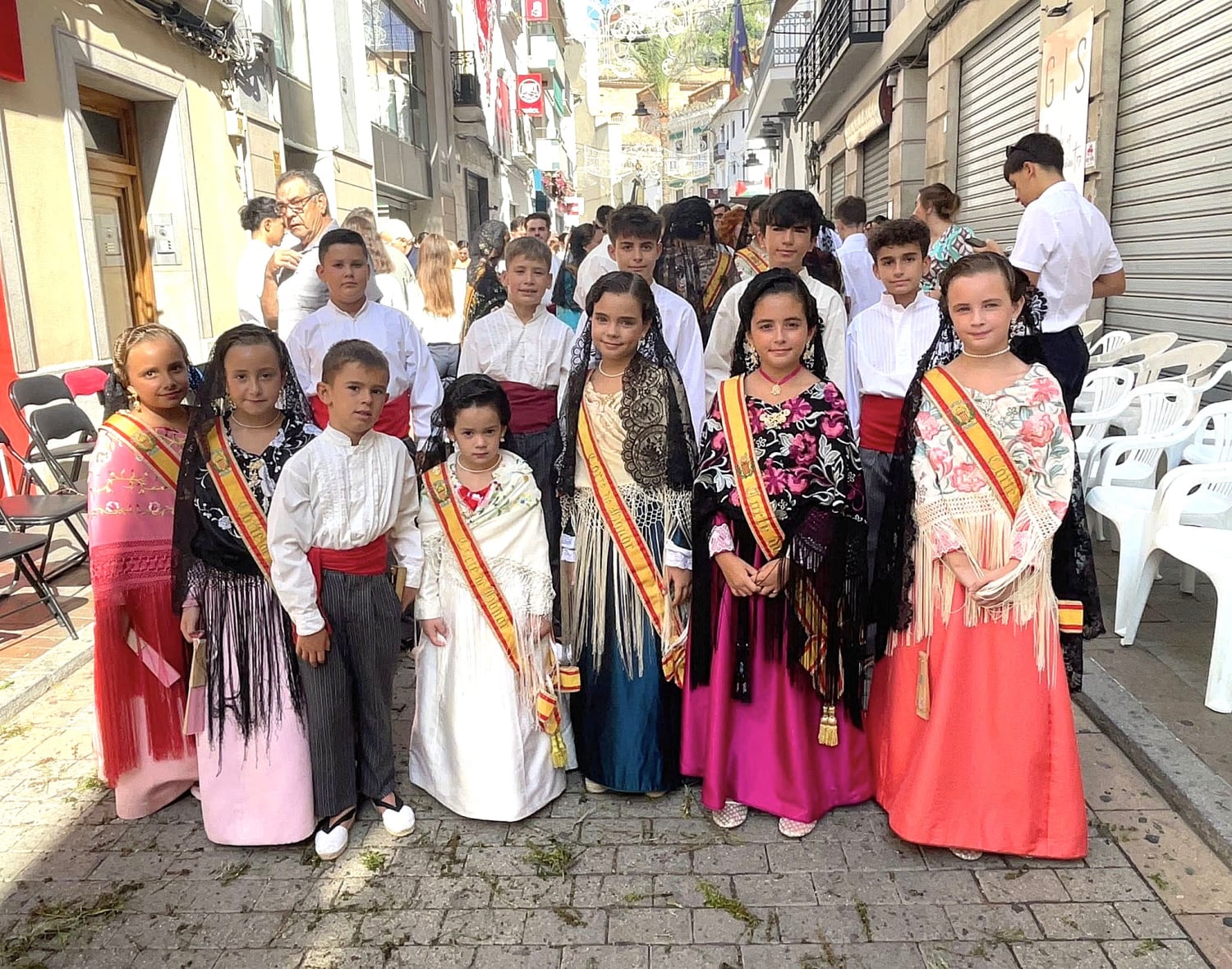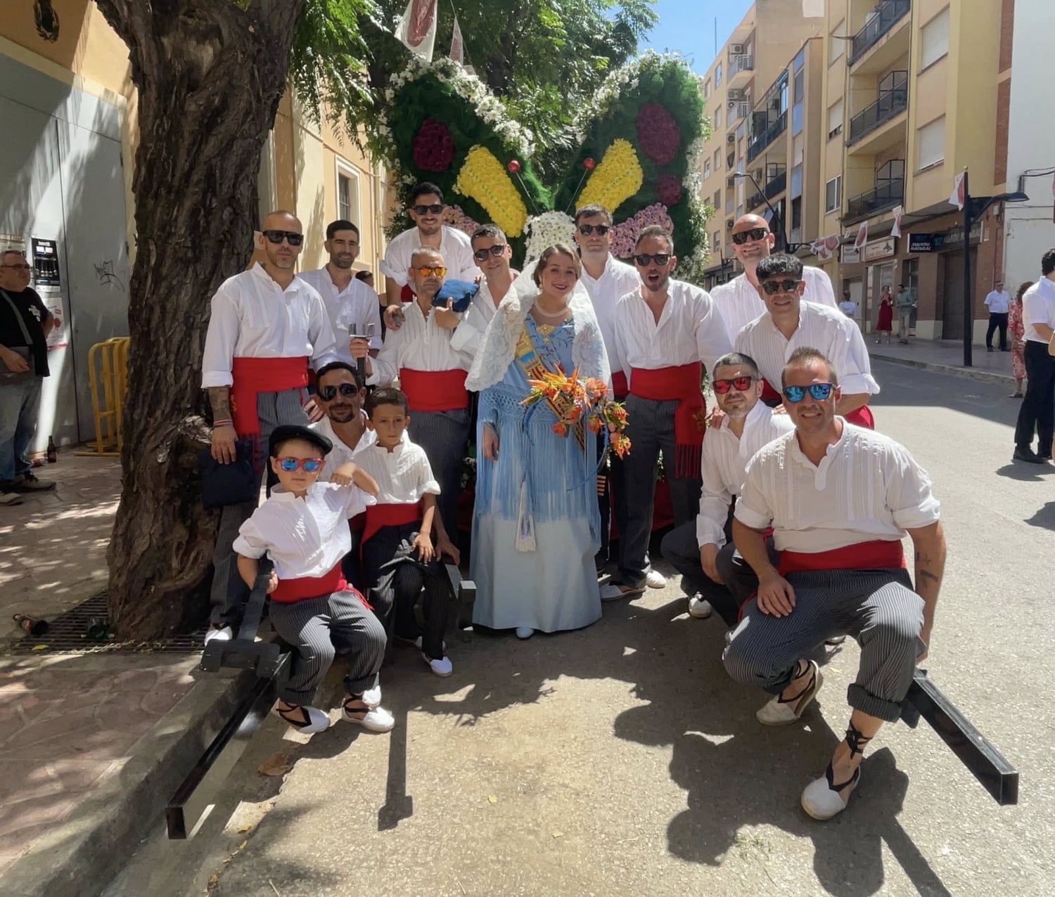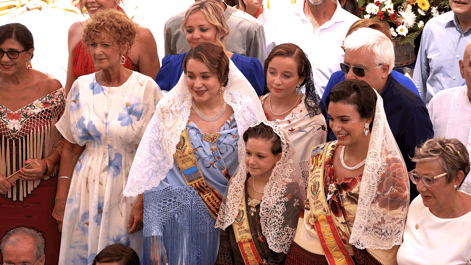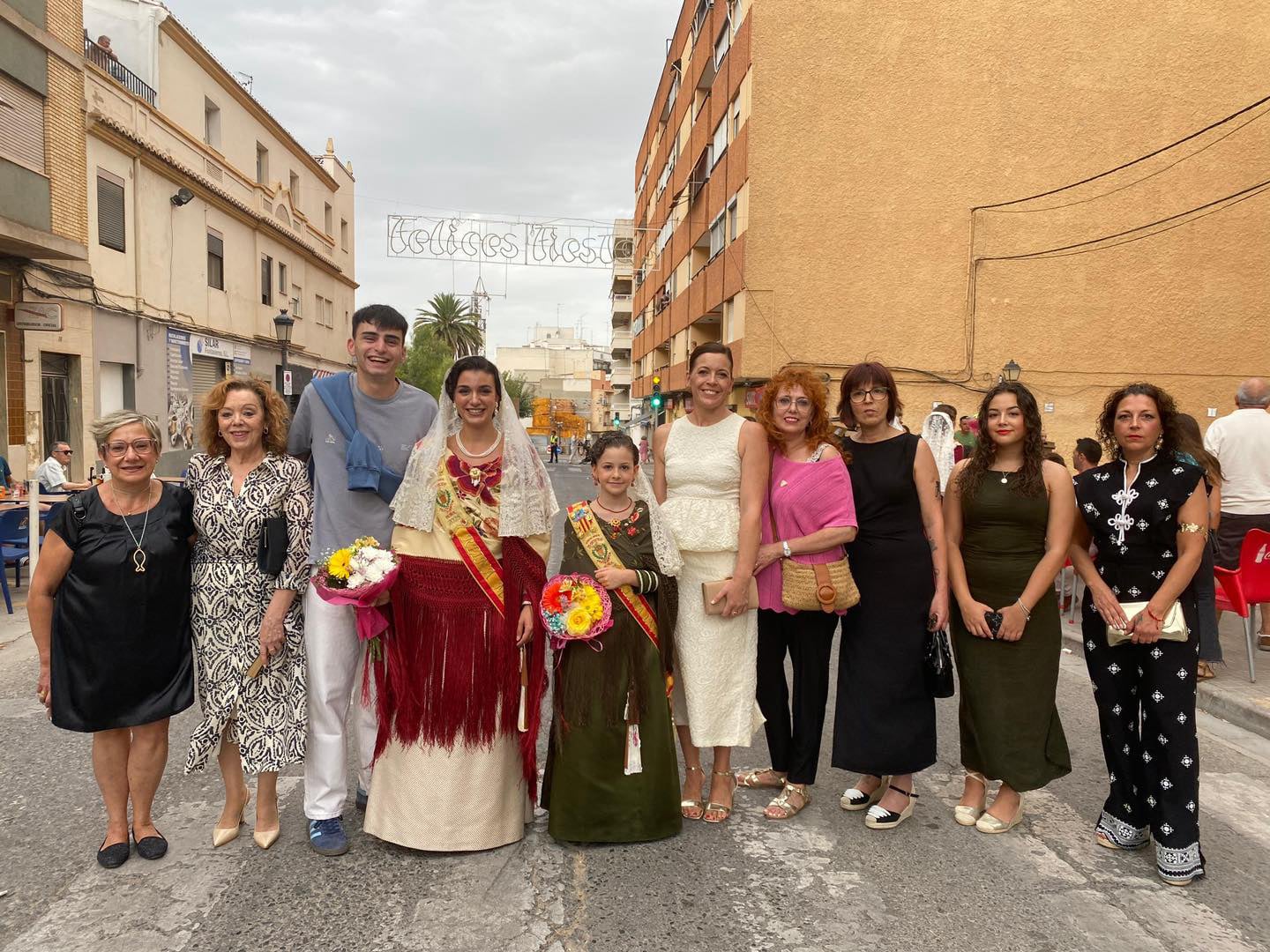 Todos ellos llevan cestas y ramos de preciosas flores y hermosos frutos, preparándose para el evento más importante del año: la Ofrenda a la Virgen de los Desamparados, patrona de Buñol, cuya imagen espera en la fachada de la Iglesia Parroquial de San Pedro Apóstol. La comitiva parte desde la puerta del teatro Montecarlo, y las mujeres de la comisión son las encargadas de su organización.